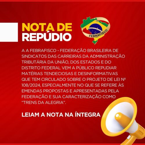📢 *Leiam a NOTA DE REPÚDIO* no link https://febrafisco.org.br/f/nota-de-rep%C3%BAdio-sobre-cria%C3%A7%C3%A3o-de-casta-de-privilegiados-no-plp-10
