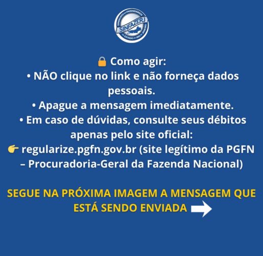 • O Governo Federal não envia cobranças de Dívida Ativa por WhatsApp, SMS ou e-mail com links externos.