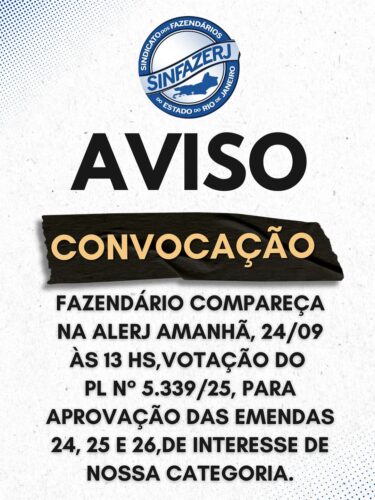 InícioÚltimas Notícias 🚨CONVOCAÇÃO FAZENDÁRIO SUA PRESENÇA É FUNDAMENTAL 🚨 Fazendário, sua presença é fundamental! 📍 Amanhã (24/09), às 13h, na ALERJ 🗳️ Votação do PL 5.339/25 – emendas 24, 25 e 26 👉 Todas de interesse da nossa categoria! ✊ Compareça e fortaleça nossa luta! Compartilhar WhatsAppEmailImprimir Prestação de Contas adminclecio - 03/02/2022 Relacionados Últimas Notícias REUNIÃO REALIZADA NA TARDE DESTA QUINTA-FEIRA (27/2), NA SEDE ASDUERJ 27/02/2026 Últimas Notícias ESTÃO SABENDO DA NOVIDADE? AGORA É PARALISAÇÃO! 🔥🚫 20/02/2026 Últimas Notícias CALENDÁRIO DE PAGAMENTOS 2026 19/02/2026 Últimas Notícias 📢 FOSPERJ E O MOVIMENTO RECOMPOSIÇÃO SALARIAL JÁ ESTIVERAM NA ALERJ NESTA TERÇA-FEIRA (03/02), DURANTE A ABERTURA DO ANO LEGISLATIVO DE 2026. 04/02/2026 Últimas Notícias SINFAZERJ NA ALERJ , NA RETOMADA DOS TRABALHOS LEGISLATIVOS, COM O MOVIMENTO UNIFICADO E FOSPERJ , LUTANDO PELA RECOMPOSIÇÃO SALARIAL 03/02/2026