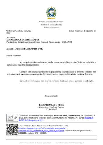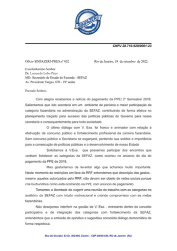 Ofício n°: 52 enviado ao Secretário
