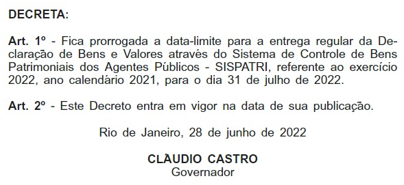 InícioÚltimas Notícias Prorrogação da data limite para entrega regular da Declaração de Bens e Valores Compartilhar WhatsAppEmailImprimir Prestação de Contas adminclecio - 03/02/2022 Relacionados Últimas Notícias UNIÃO DOS SERVIDORES CONTRA O CALOTE DO GOV. CLÁUDIO CASTRO! 08/03/2026 Últimas Notícias FELIZ DIA DA MULHER 07/03/2026 Últimas Notícias REUNIÃO REALIZADA NA TARDE DESTA QUINTA-FEIRA (27/2), NA SEDE ASDUERJ 27/02/2026 Últimas Notícias ESTÃO SABENDO DA NOVIDADE? AGORA É PARALISAÇÃO! 🔥🚫 20/02/2026 Últimas Notícias CALENDÁRIO DE PAGAMENTOS 2026 19/02/2026